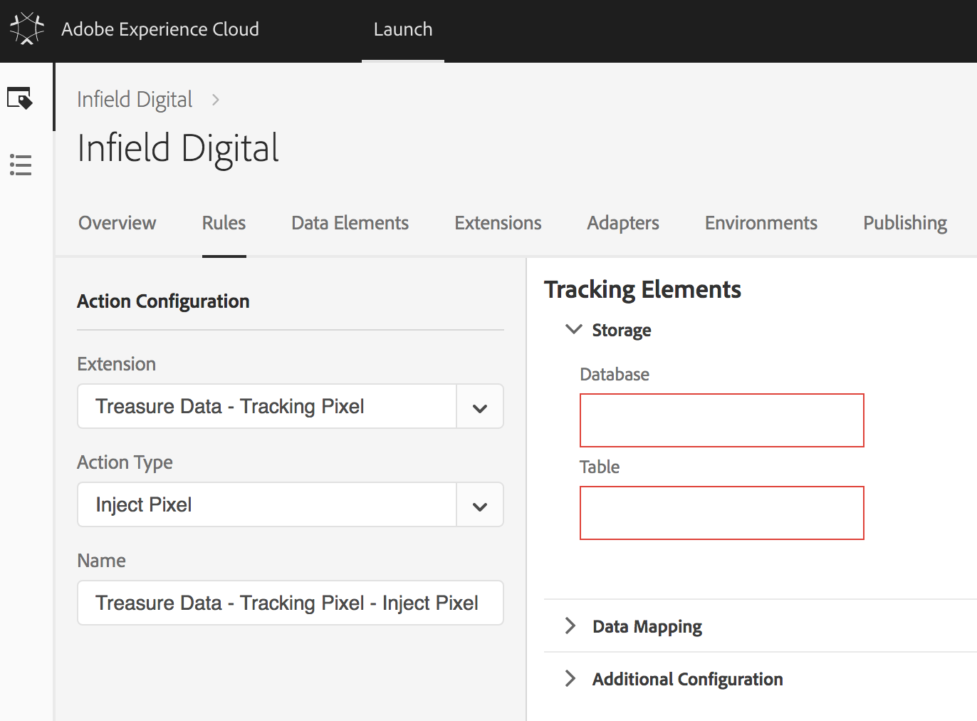 Treasure Data provides an extension for Adobe Launch. Adobe Launch is a tag management solution. The extension enables brands to extend their tracking of user actions and build comprehensive customer profiles by using the Treasure Data Tracking Pixel extension.