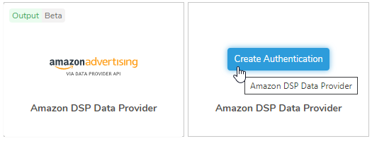 - Hover over the Amazon DSP Data Provider connector and select Create Authentication.