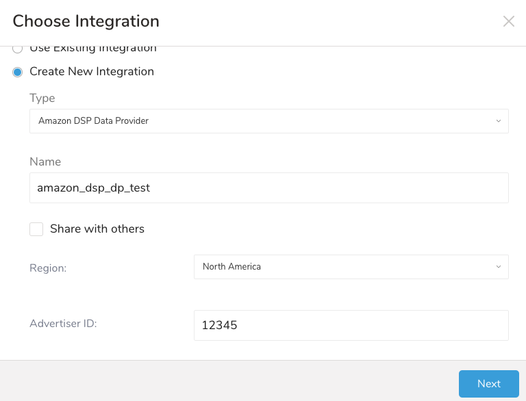 | Ignore Invalid Records | If this check box is selected when the time data is sent to Amazon DSP, incorrect records or errors are skipped, and the remaining rows of data continue sending. If this checkbox is not selected, an exception is thrown when inaccurate records or errors are encountered. |