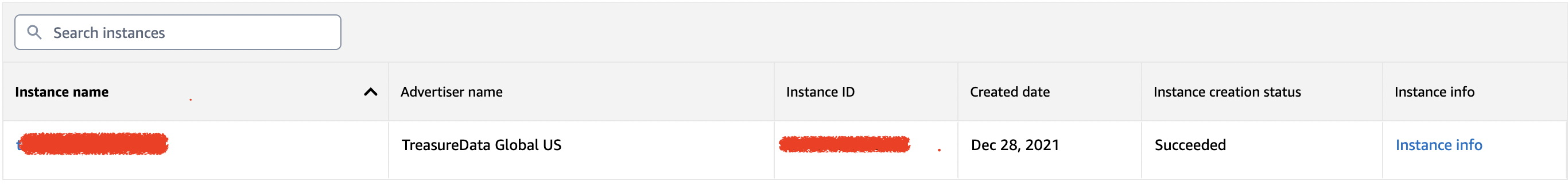 - Obtain the Amazon Marketing Cloud Instance ID from the Instance list.