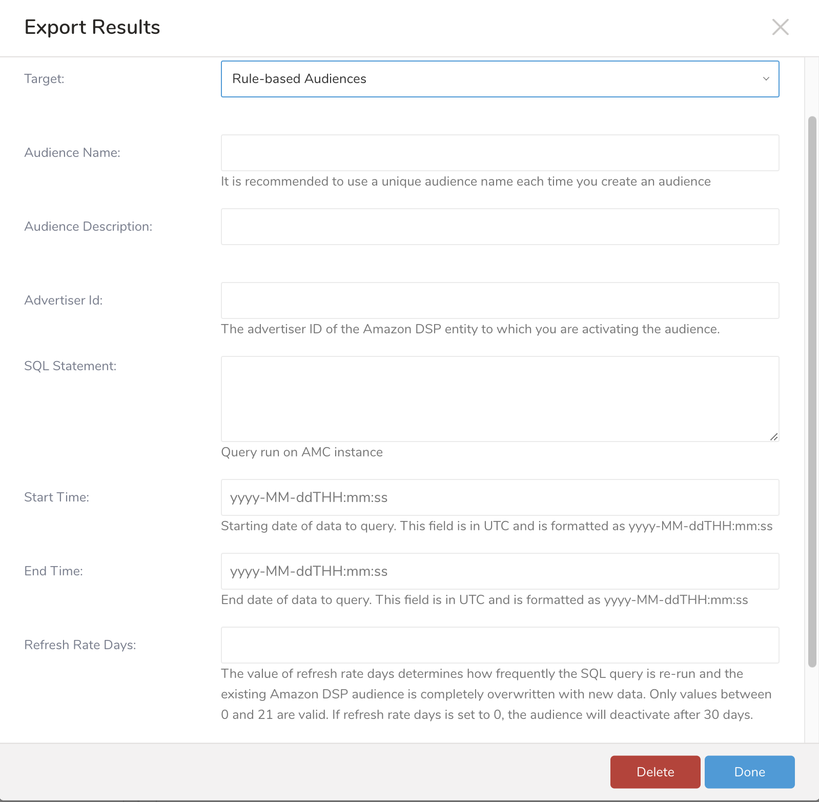 | AMC Instance Id | Amazon Marketing Cloud Instance ID |