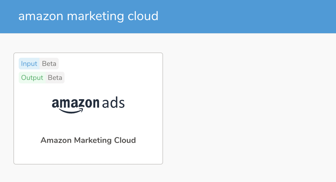 - Search for Amazon Marketing Cloud and select Amazon Marketing Cloud.