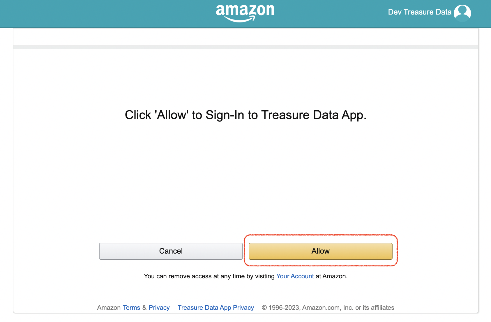 - Select Allow to accept consent screen, which redirects to the TD console.