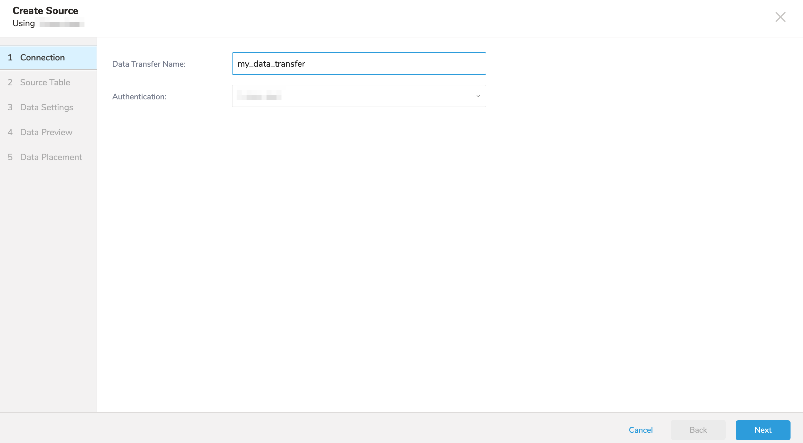 For data placement, select the target database and table where you want your data placed and indicate how often the import should run.