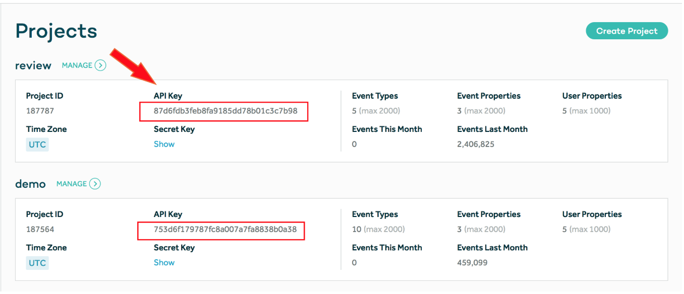 If you do not have an Amplitude account, go to https://amplitude.com and register. Then, create an organization and a project. When you create a project, you receive an API Key for the project.