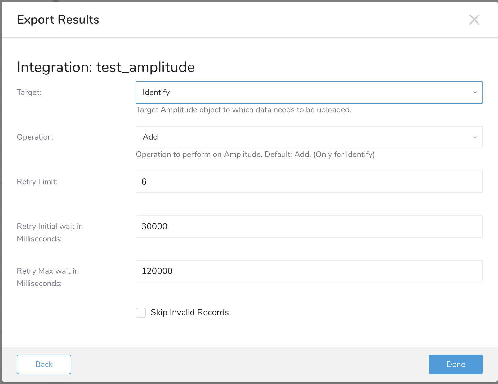 '{"type":"amplitude","api_key":"api_key","target":"identify","region":"US","operation":"add","skip_invalid_records":true}'\