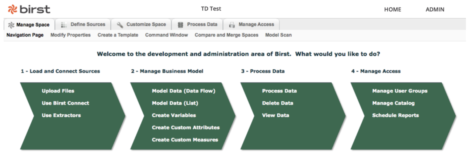 Visit the Navigation Page under Manage Space, and select Use Birst Connect.