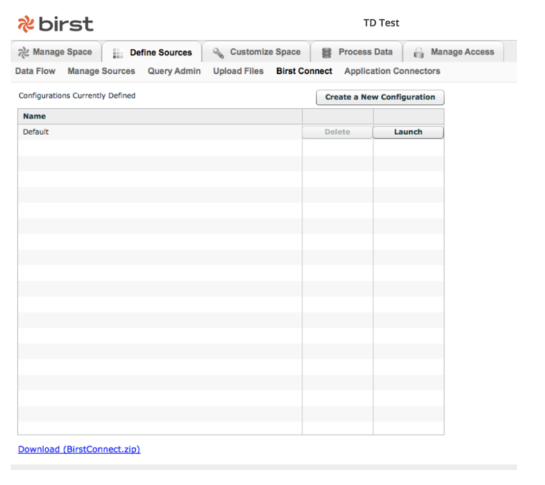 Download your .jnlp file by selecting Launch for one of your configurations. Also, download your BirstConnect.zip file.