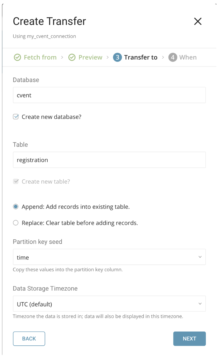 The connector inserts literal time values received from the Cvent API. This means that the time values are relative to the implicit time zone of the Cvent server and assumed to be UTC. Also, the Event data type's time-related fields are relative to its own event's time zone. That means the Data Storage Timezone doesn't indicate the actual time zone of the data.