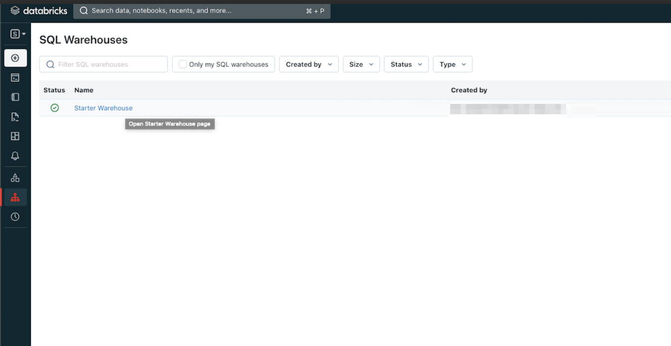 - Select an instance of an SQL Warehouse.