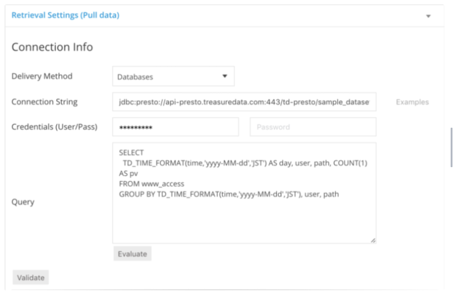 | Connection String | jdbc:presto://api-presto.treasuredata.com:443/td-presto/database |