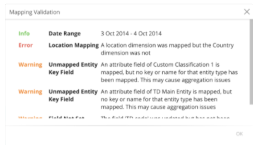 Select Save to finalize the mapping phase. If it shows an error like the following example, you must resolve these errors to proceed to the next phase.