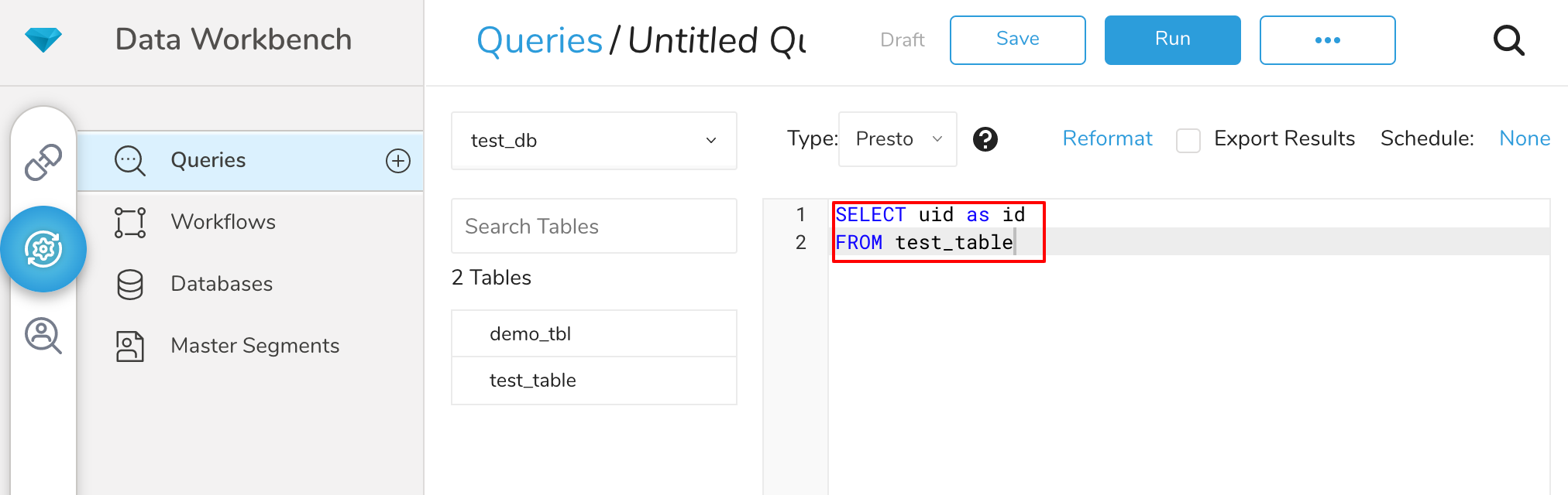 - Navigate to Data Workbench > Queries.