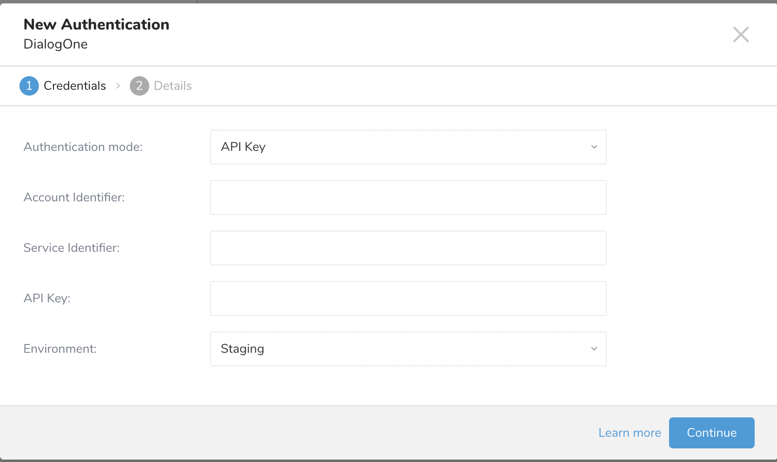 - An account identifier and service account JSON key provided by DialogOne.