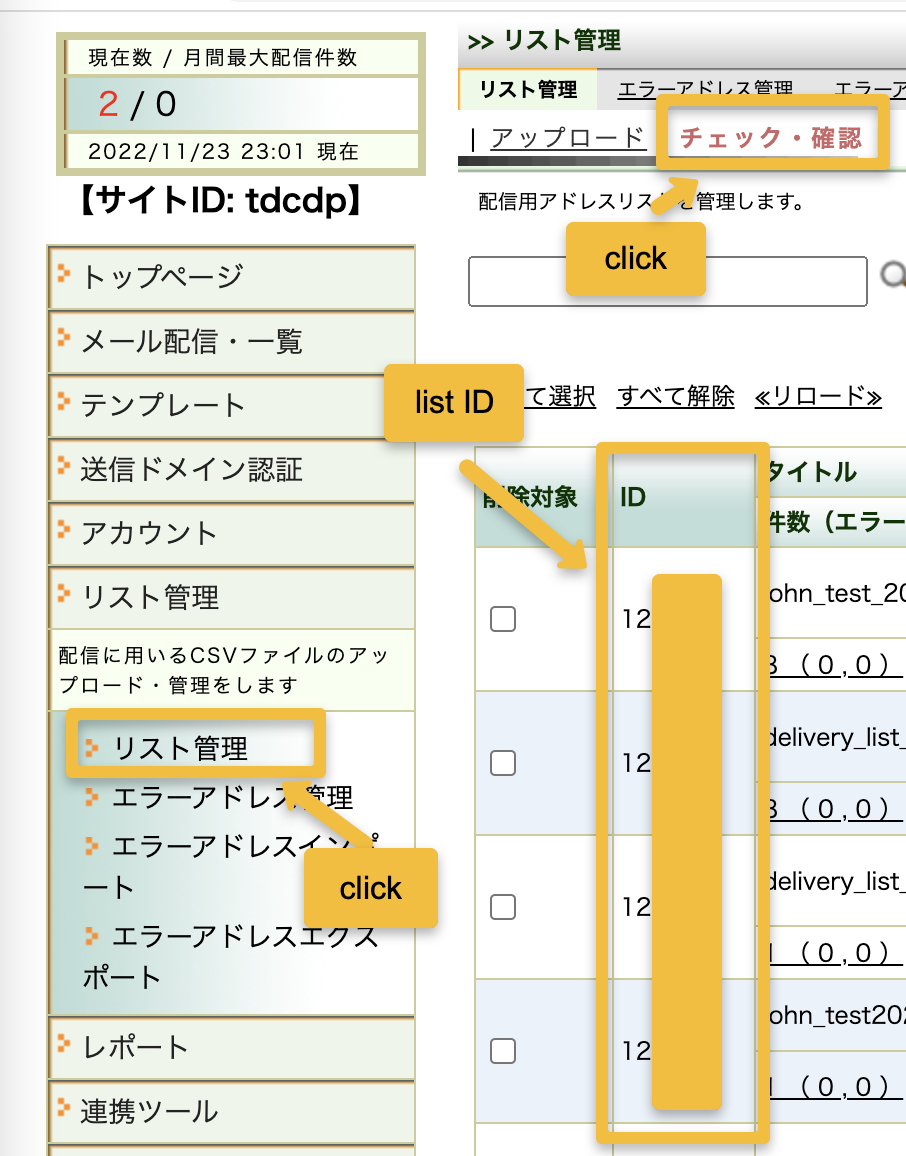 To use "send_email" option, you need to get a draft ID which can be found as shown below (メール配信・一覧 > 下書きメール).