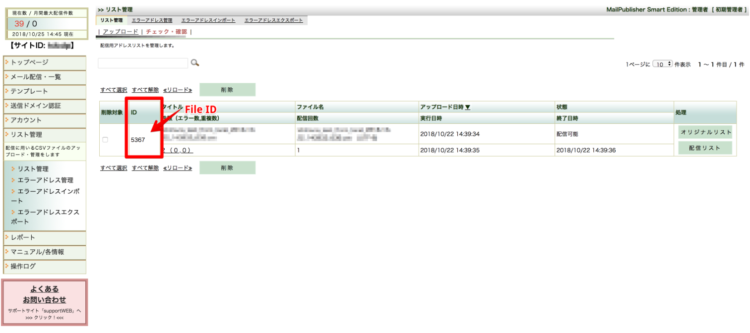 File IDs can be seen here: (リスト管理 > リスト管理 > チェック・確認)