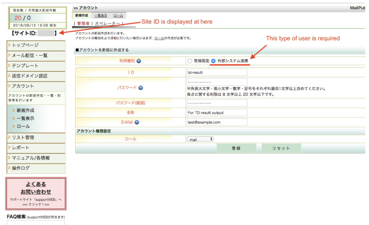 Access to your API-enabled account is required before you can upload the email delivery list. The Site ID can be retrieved from the MailPublisher Smart console.