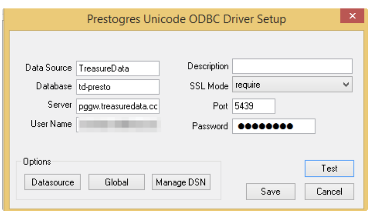 Install Treasure Data ODBC Driver, and register to your machine. We’ll assume that you have DSN (Data Source Name) as Treasure Data in the following sections.