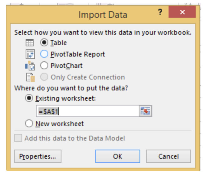 When you import the data, you may choose a Table, a PivotTable Report, or a PivotChart