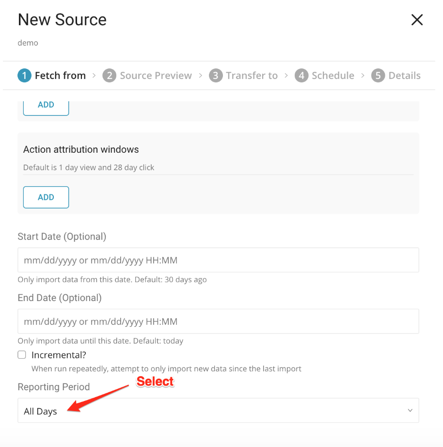 - Start and End Date or Incremental