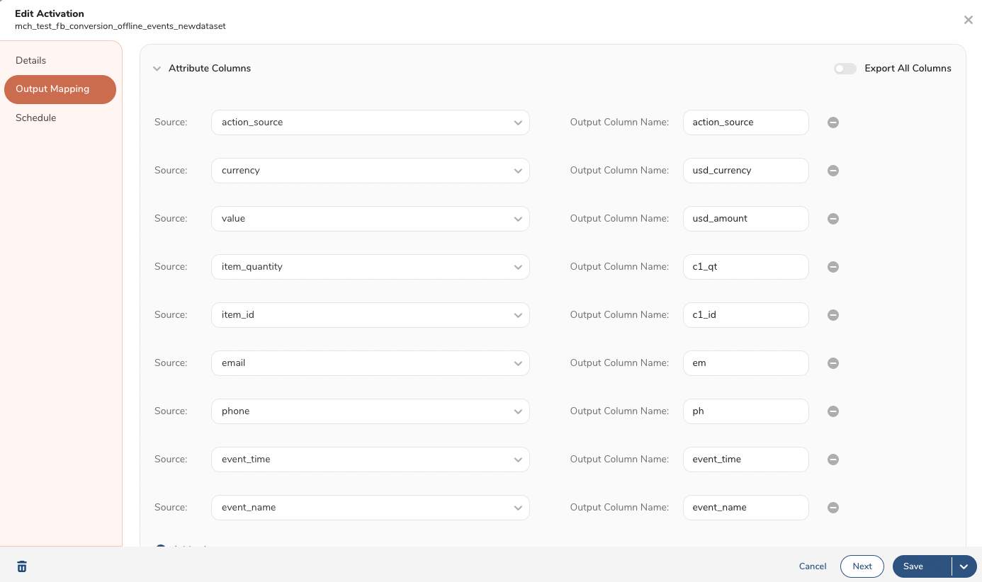 TD Console starts the activation on Facebook by sending an API call to Facebook with a request payload that contains information like telephone number, email address, item list, currency, etc. Here is an example of the API call. For additional information see the Meta documentation Sending Offline Events Using the Conversions API.