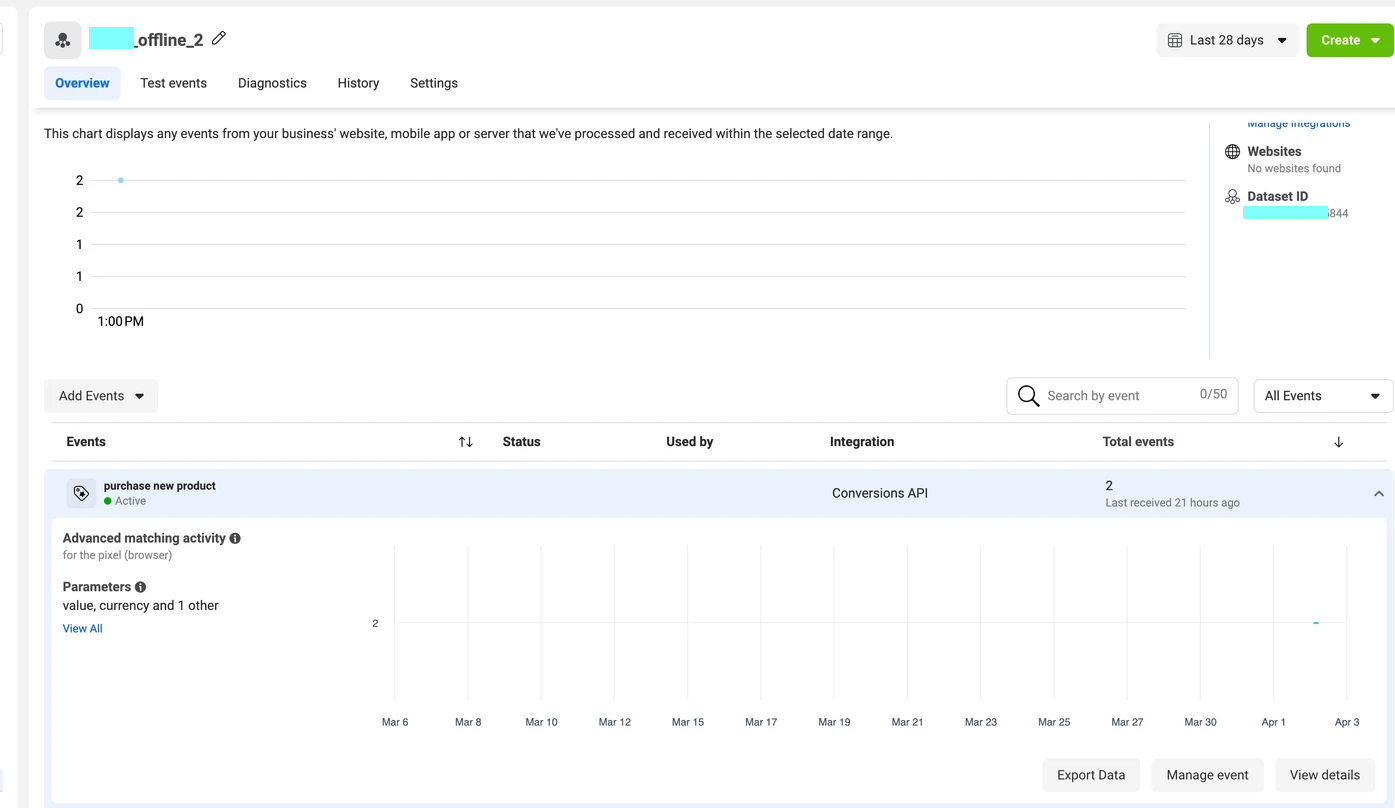 When the events appear on the Facebook dataset, they will look something like this: