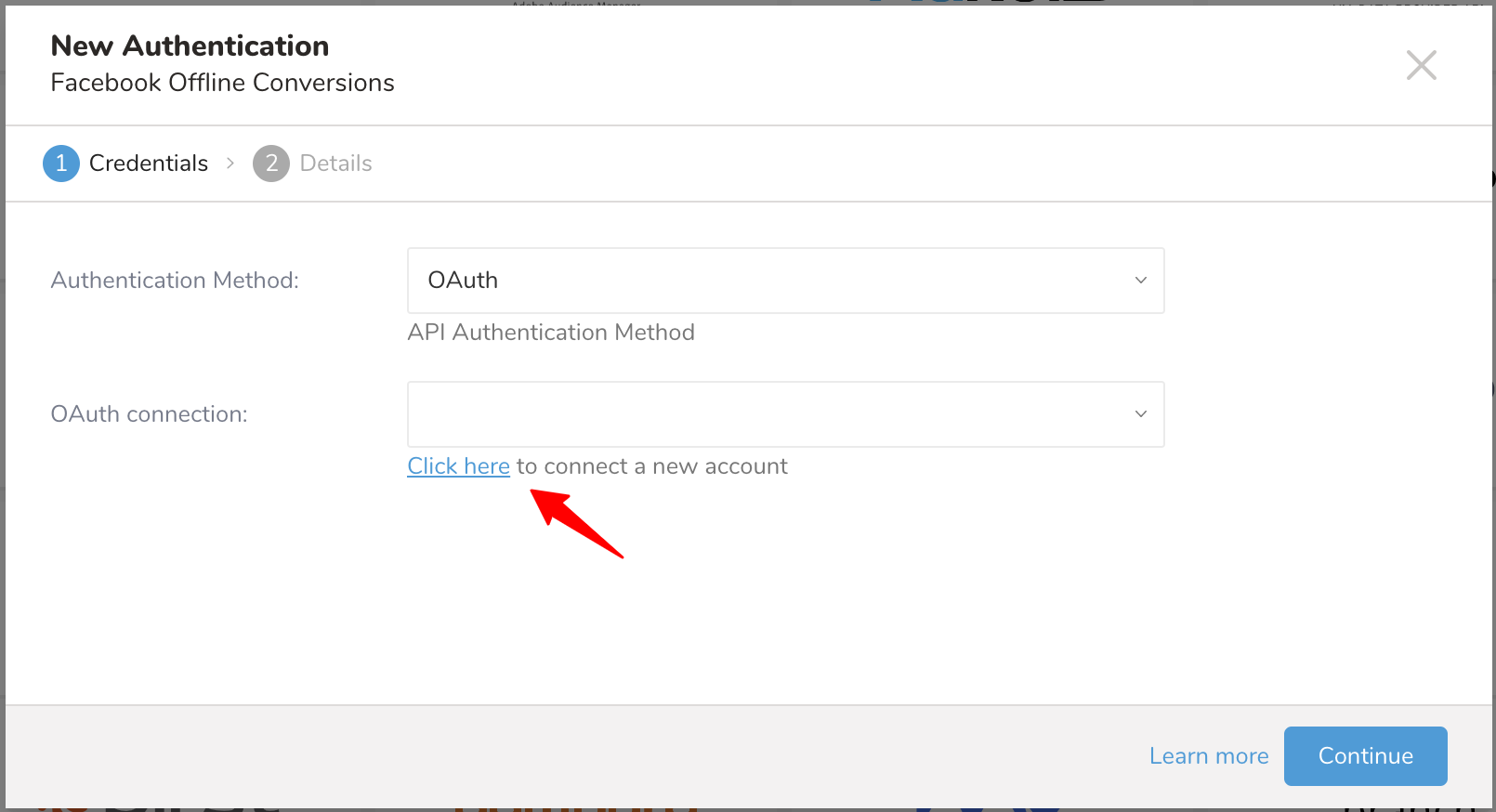 - Repeat the first step (Create a new connection) and choose your new OAuth connection.