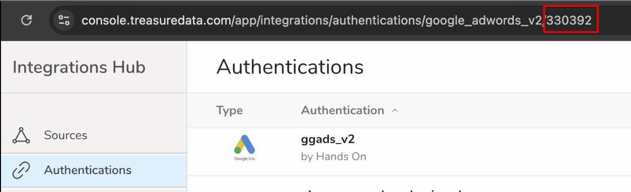 - Authentication ID: follow the steps above to create an Authentication for this integration on the TD Console. Then the ID could be seen at the last portion of its URL on the Authentication screen.