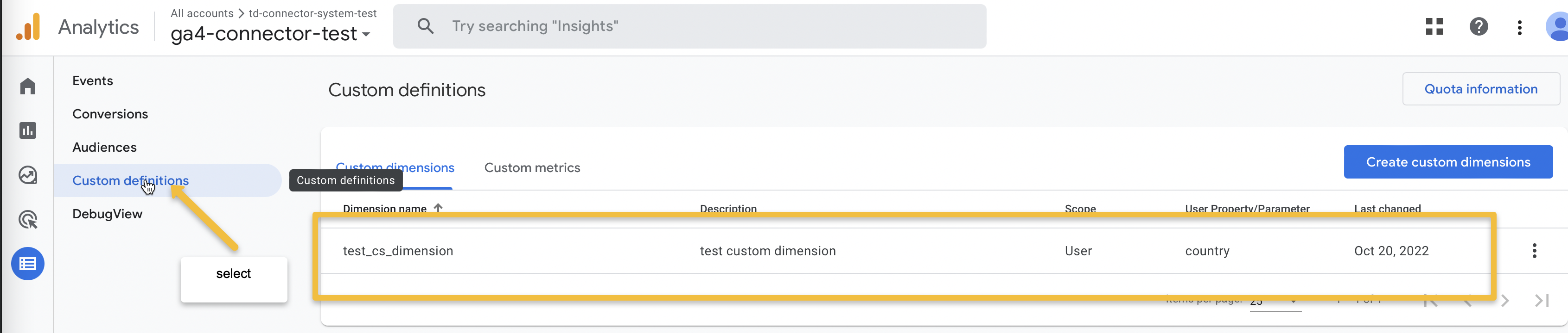 For example, the previous image uses customUser:test_cs_dimension for the custom dimension name and customEvent:test_cs_metric as custom metric name.