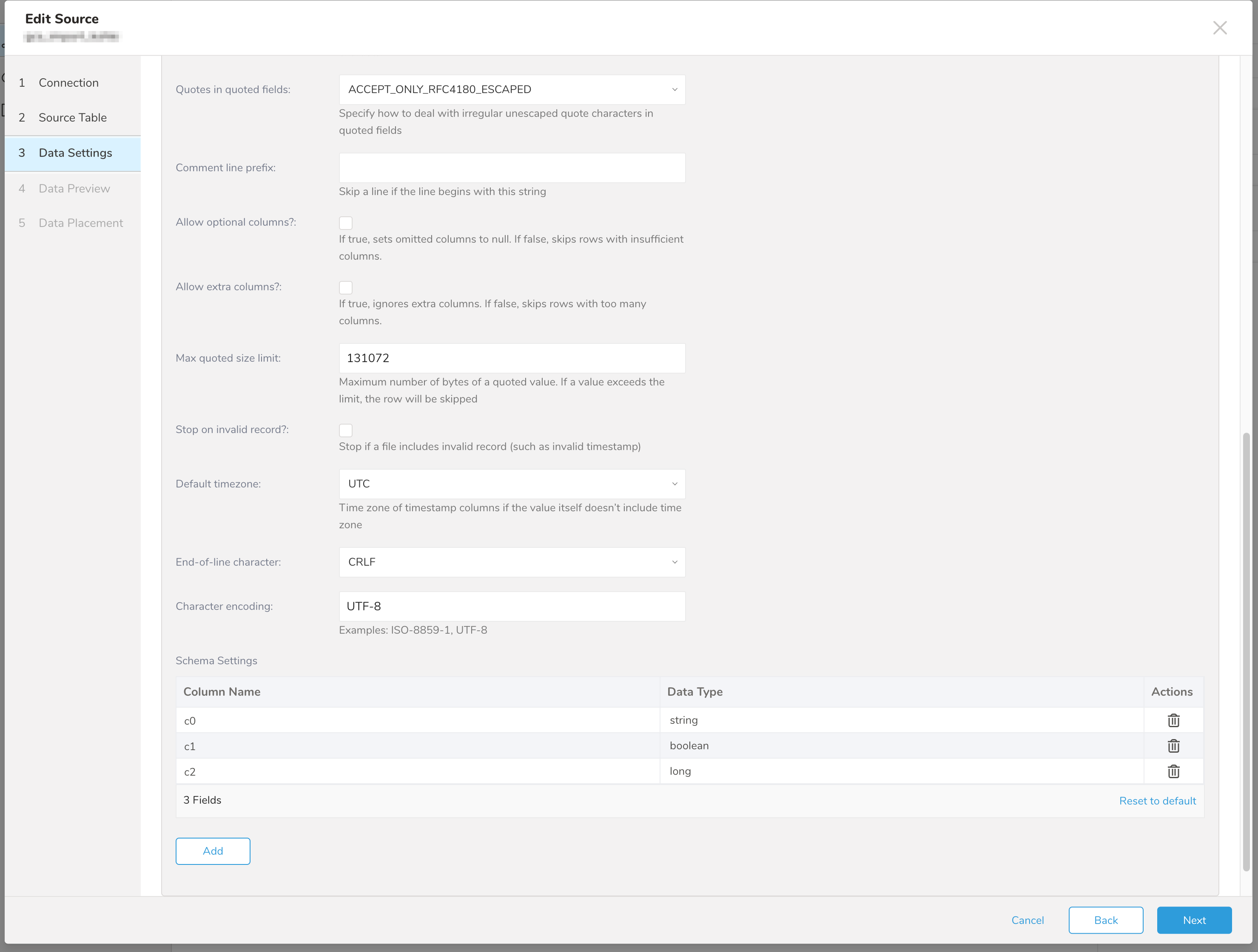If the system detects your column name or column type unexpectedly, modify load.yml directly and preview again.