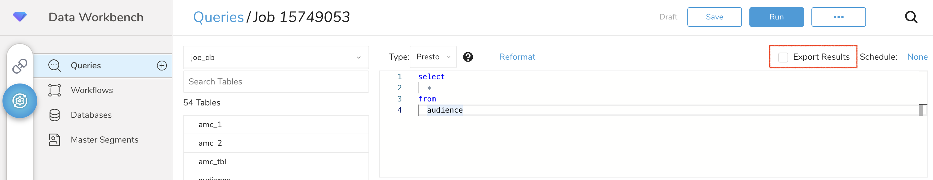 The TD Console supports multiple ways to export data. Please follow the below steps to export data from the Data Workbench