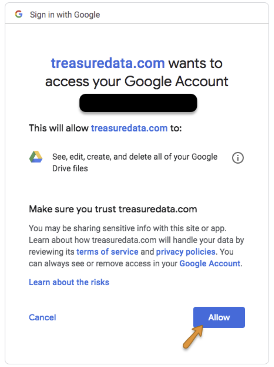 Log into your Google account in the popup window and grant access to the Treasure Data app.