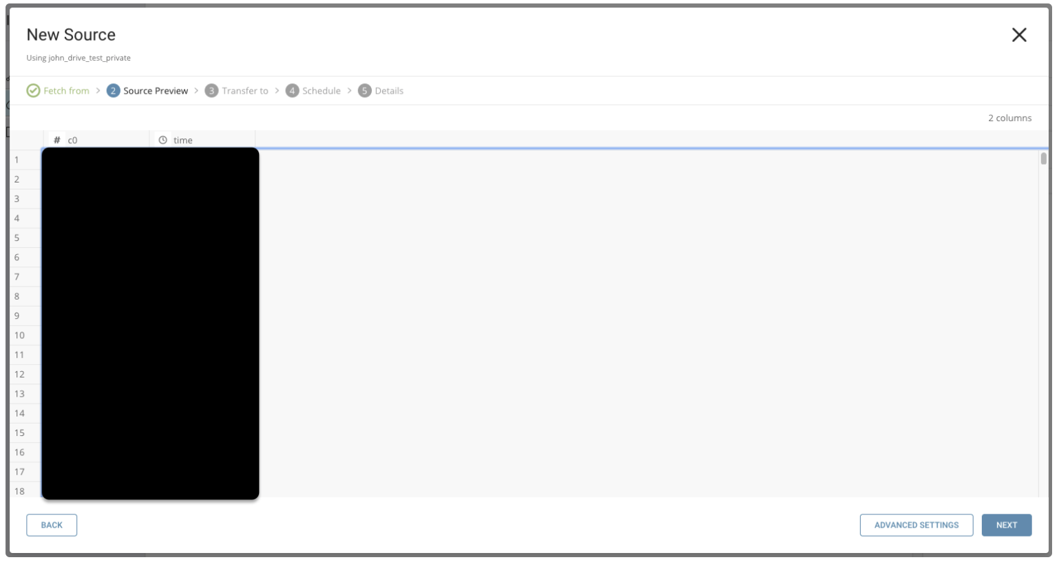 You’ll see a preview of your data. To make changes, select Advanced Settings, otherwise select Next.
