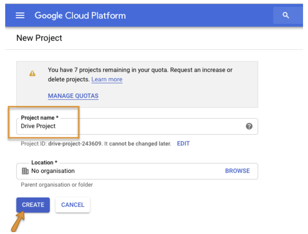 Go to https://console.cloud.google.com/projectcreate to register a project.