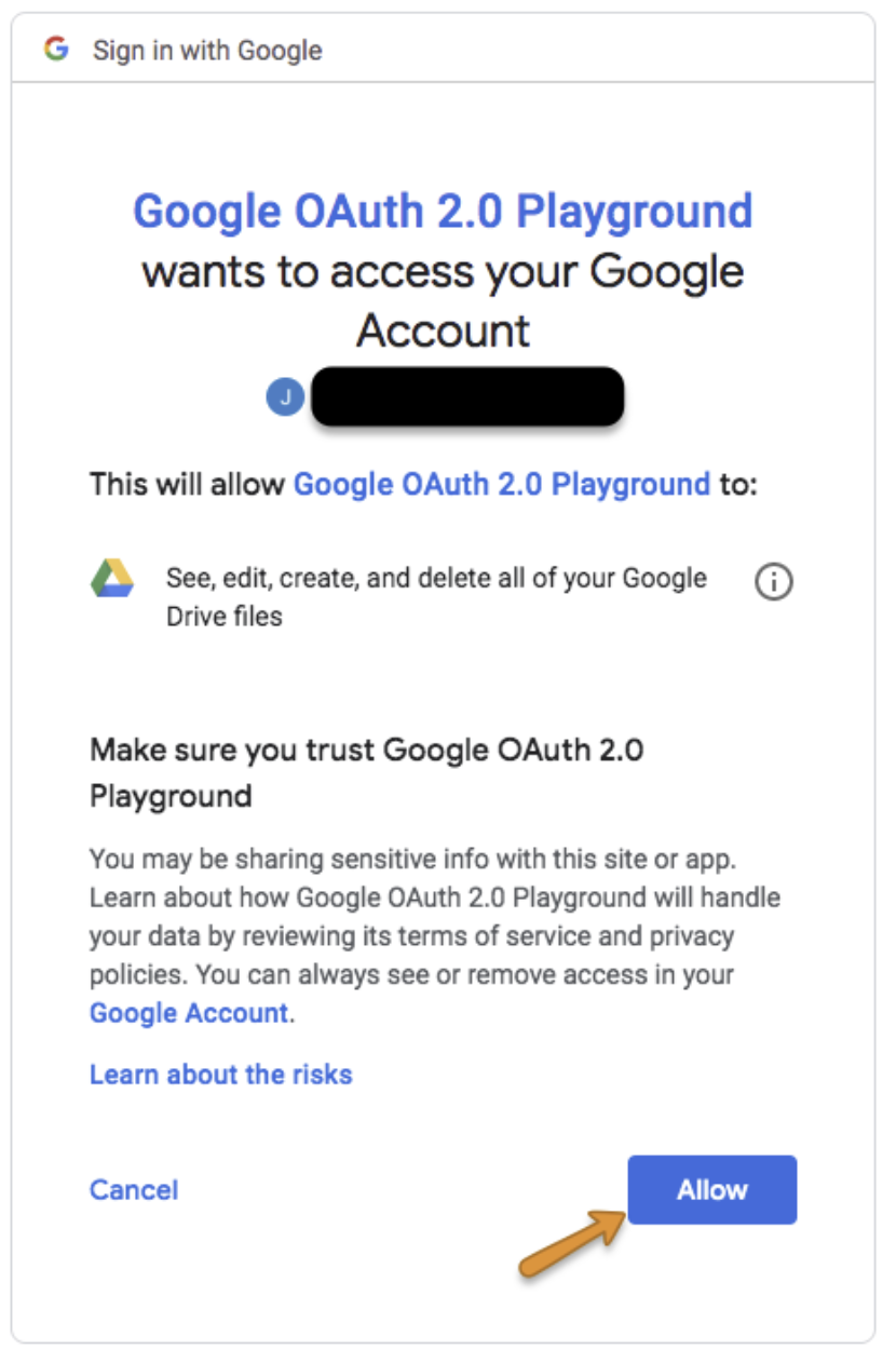 Log in with your Google account and select Allow.