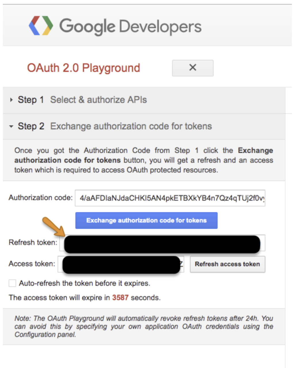 Copy the refresh token and store it to use later.