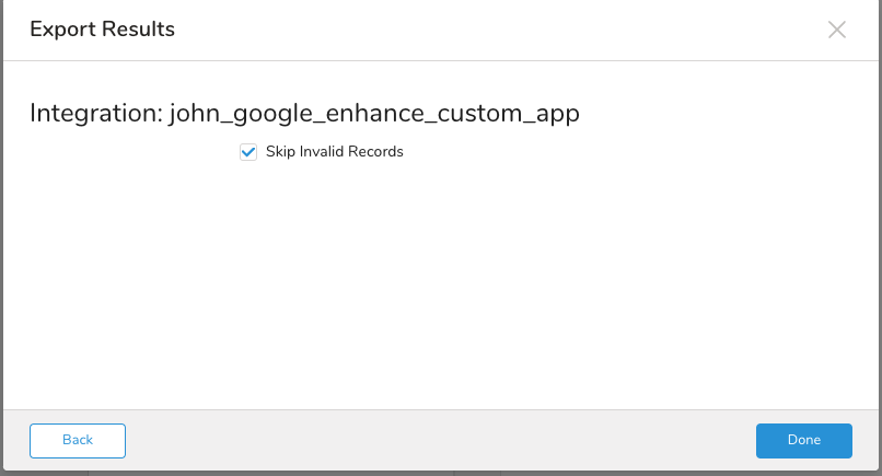 | Skip Invalid Records | If you check the errors as the data rows identify them, the export job continues and is successful. Otherwise, the job fails. |