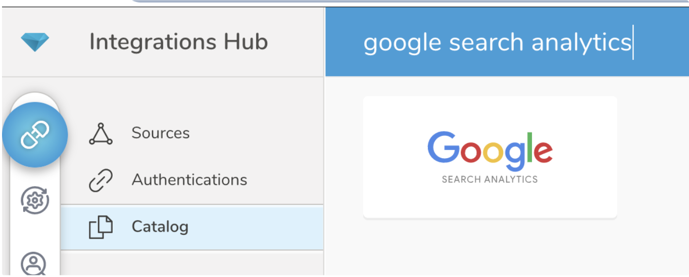 Go to Integrations Hub > Catalog and search and select Google Search Analytics.