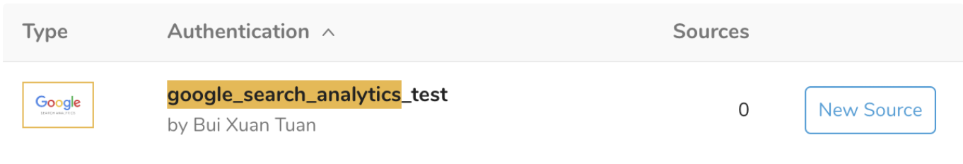 In Authentications, configure the New Source.