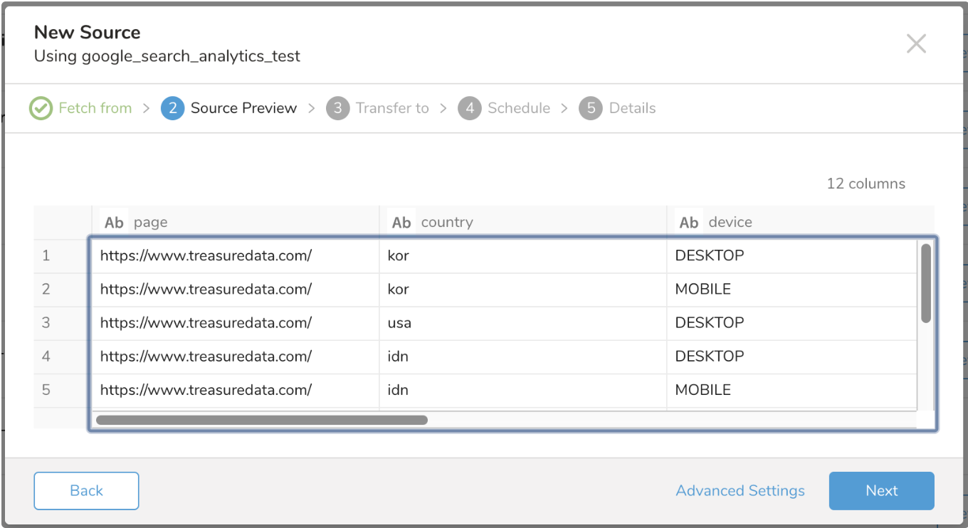 $ td connector:preview config.yml You do not need to run td connector:guess for the Google Search Analytics connector.