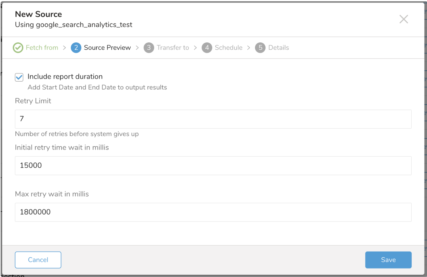 During the import of data into Treasure Data, there are a number of factors that affect the process, such as network fluctuation, and concurrency limit on Google server. The connector retries import for the number of times you specify.
