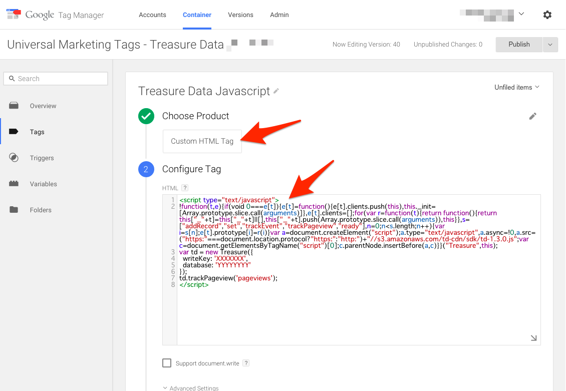 Treasure Data works with Google Tag Manager (GTM) to collect your data into a single place. Together, this integration makes Google’s management tool more powerful for your needs.