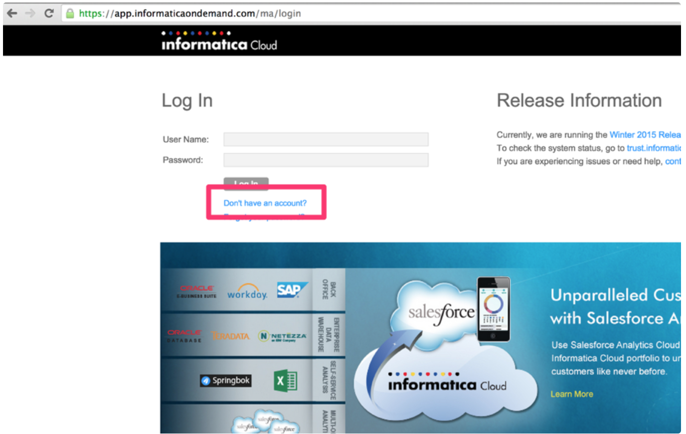 Create an Informatica Cloud account here.