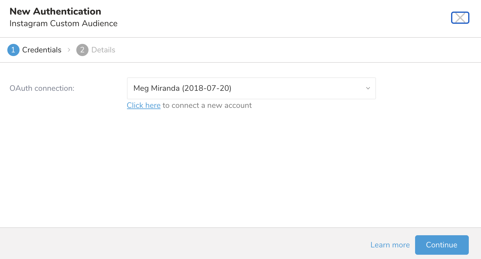 You will be redirected back to the Catalog. Repeat the first step (Create a new connection) and choose your new OAuth connection.
