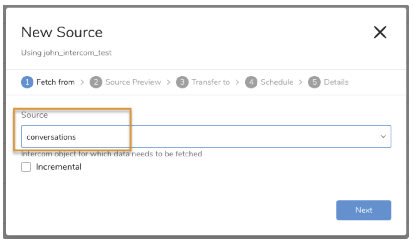 - Incremental: Use when importing data based on a schedule. Use to import only the newest user or conversation created since the last run.