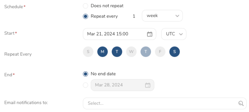 - Day of Week: sun, mon, tue, wed, thu, fri, sat.