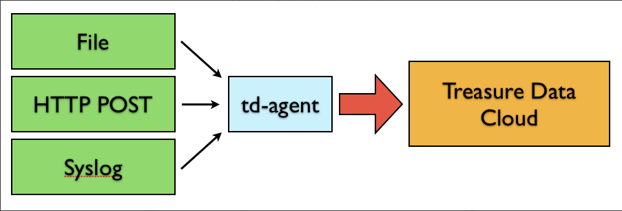 $ sudo launchctl load /Library/LaunchDaemons/td-agent.plisttd-agent accepts data via port 24224, buffers it (var/log/td-agent/buffer/td), and automatically uploads it into the cloud.