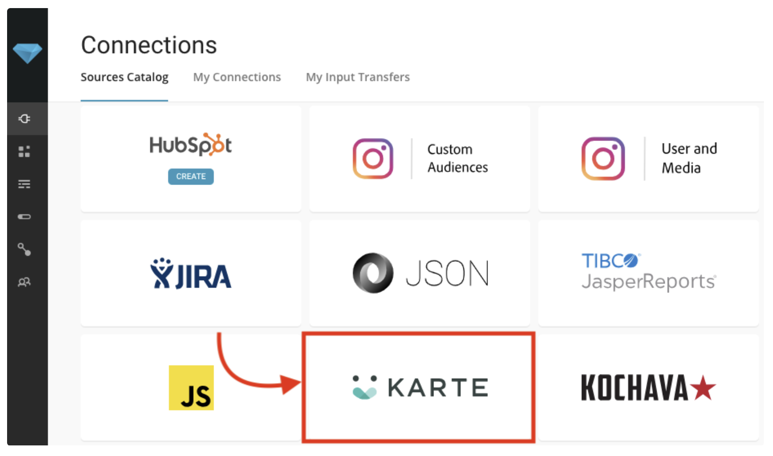 Go to Integrations Hub > Catalog and search. Select KARTE.