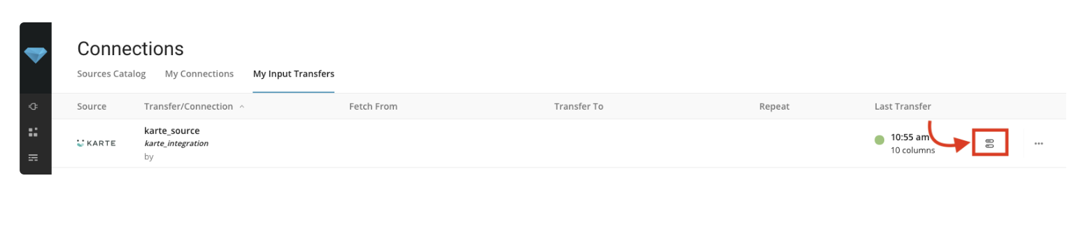 Edit your existing jobs in My Input Transfers. To view the details of previous transfers for this data connector, select the jobs icon.