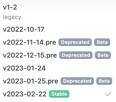 Revision Deprecated? Planned retirement date Retired? 2022-10-17Yes ~January 24th, 2024 No 2023-01-24Yes ~February 23rd, 2024 No 2023-02-22No TBD No